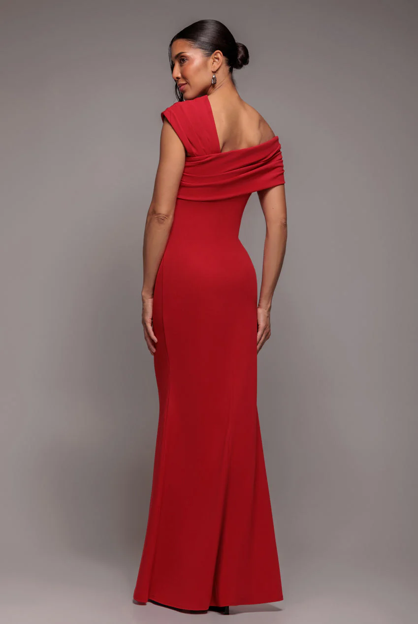 Goddiva One Shoulder Evening Maxi Dress – Red